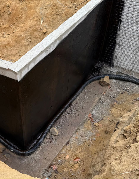 Targeted waterproofing with drainage systems often works well with strip drains around retaining walls and specific foundation drainage challenges.